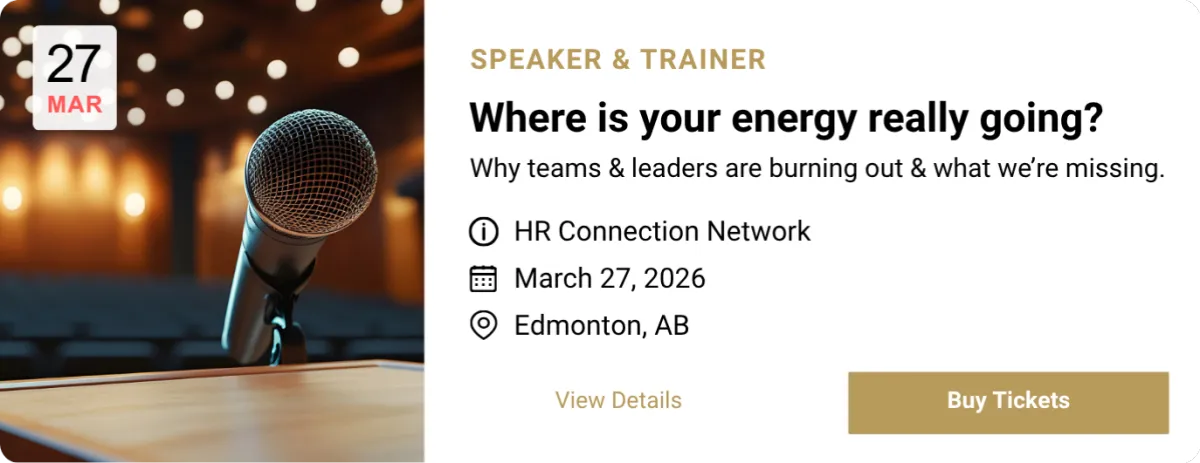 In my workshops, I guide teams through practical conversations and exercises that help protect energy, strengthen boundaries, and support healthier work cultures.